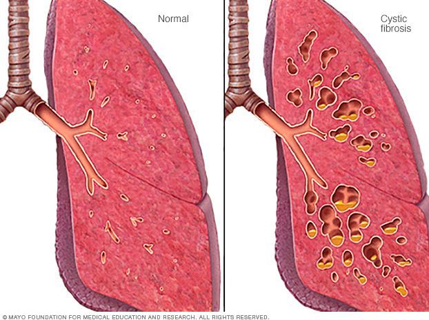 Cystic fibrosis (CF), also known as mucoviscidosis, is a genetic disorder that affects mostly the lungs but also the pancreas, liver, kidneys and intestine.[1][2] Long-term issues include difficulty breathing and coughing up sputum as a result of frequent lung infections.