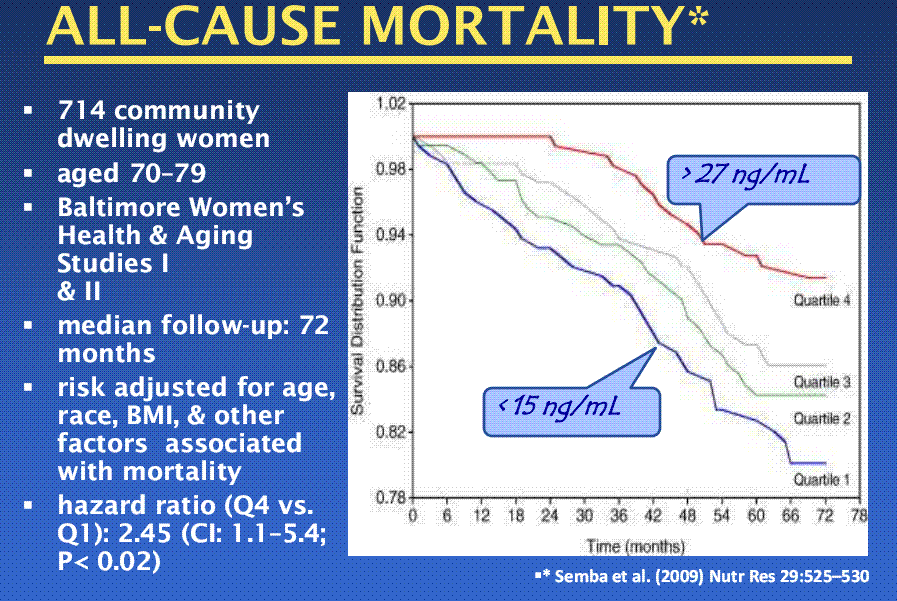 - All Cause Mortality big improvement from 15 to 27 ng - Heaney chart 2010 (file) chart below